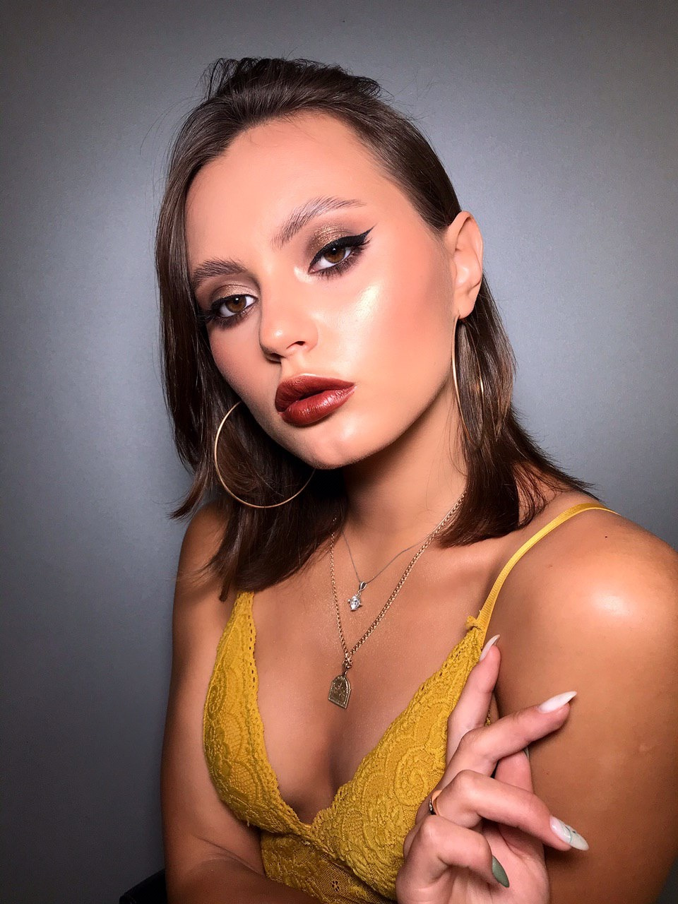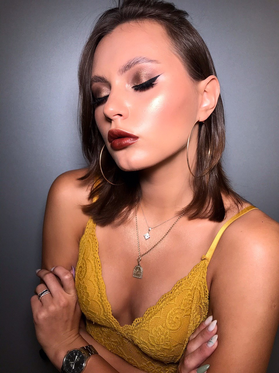 - Hair color:Dark brown