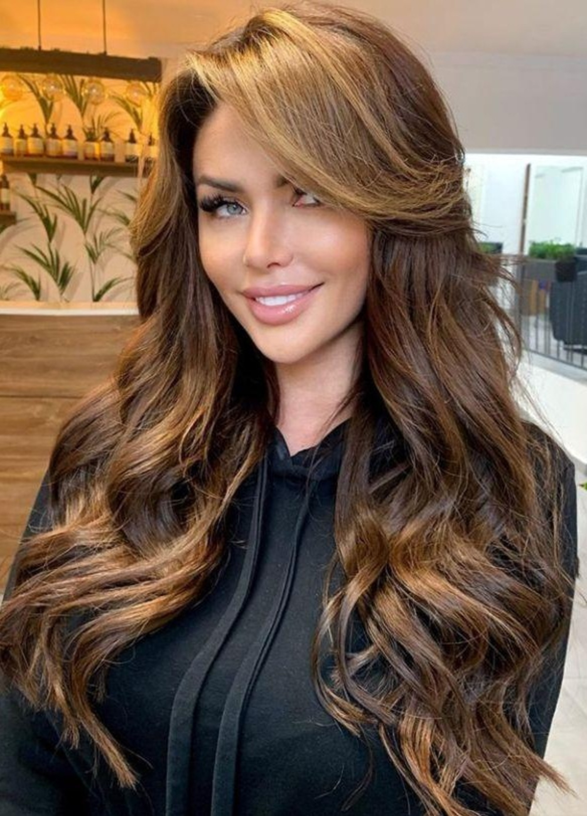 - Hair color:Dark brown