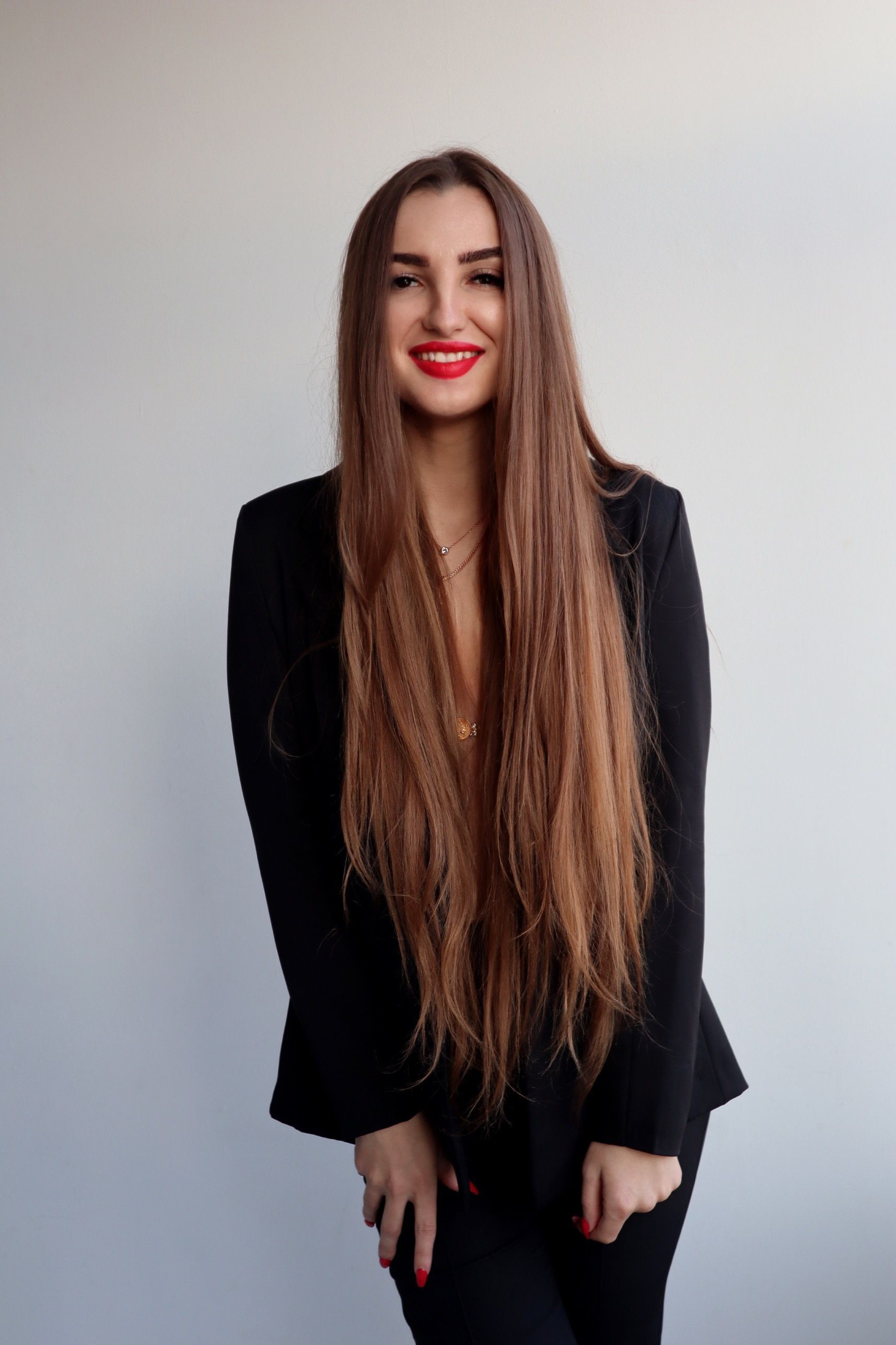 - Hair color:Dark brown