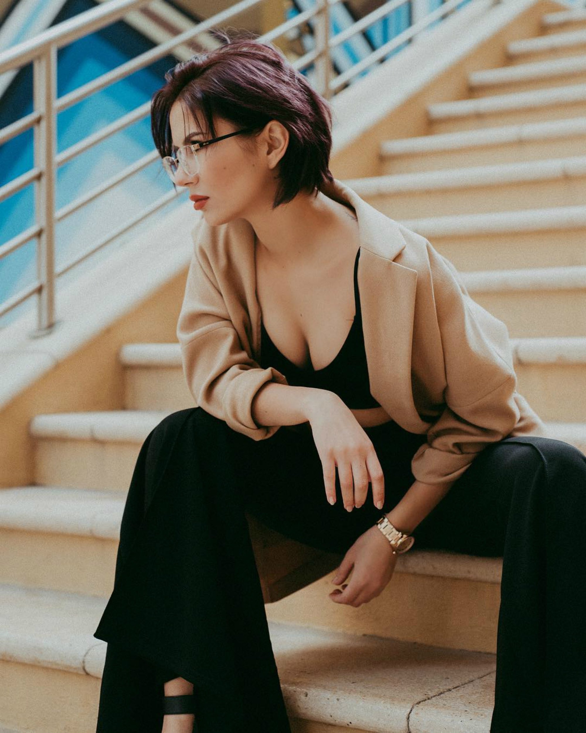 - Hair color:Dark brown